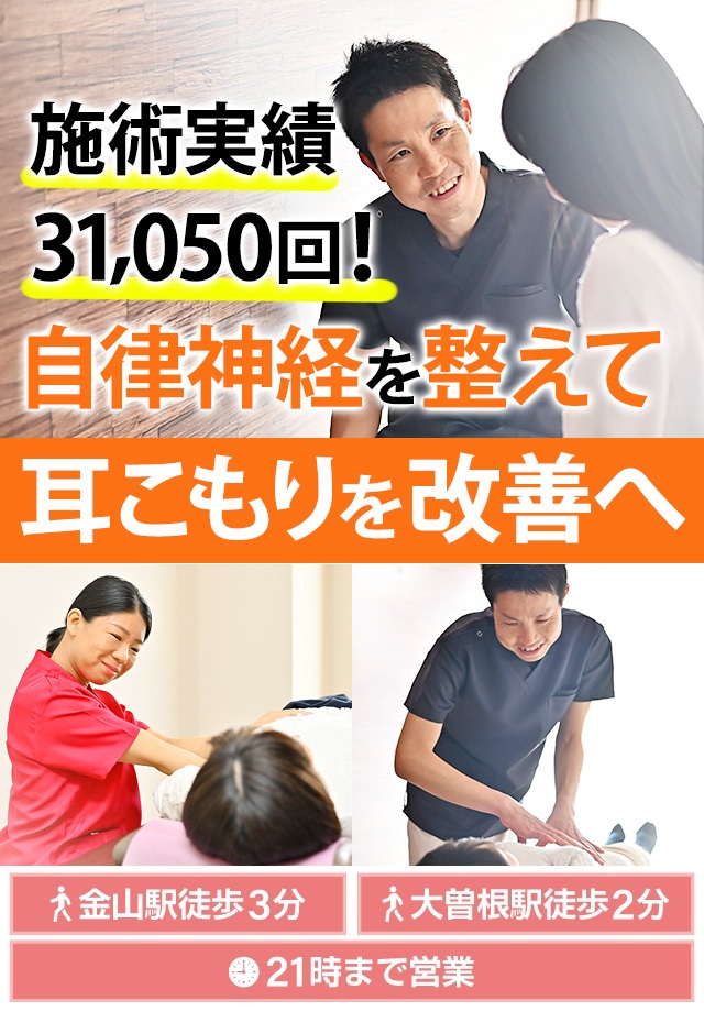 初回を受けたその日のうちに、耳の詰まりがなくなりました。次の日に少し出たものの、それ以来はほぼ耳のつまりはおさまっています。めまいも1日ありましたが、それから出ていない状態です。