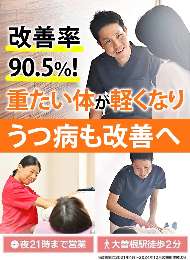 正しい的確な施術によってうつ病の症状は改善していくのです。